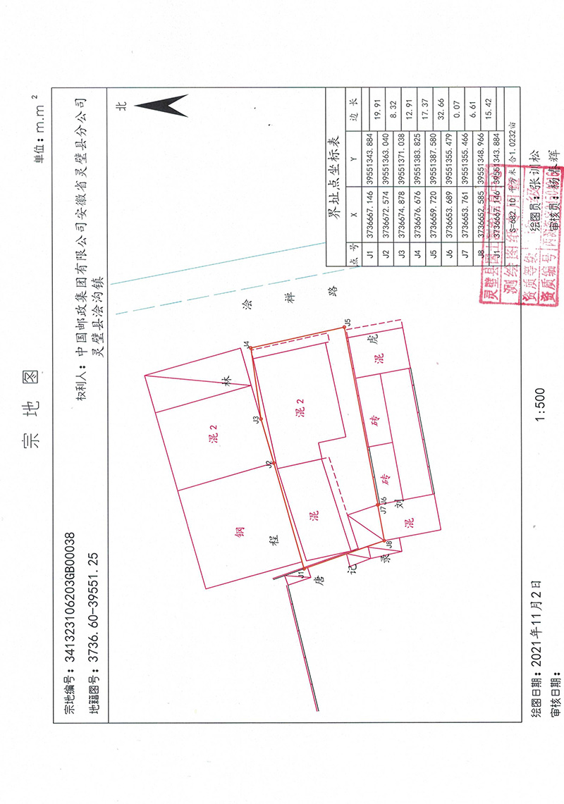 灵璧县不动产登记中心界址公告 (中国邮政集团有限公司安徽省灵璧分公司灵璧县浍沟镇)