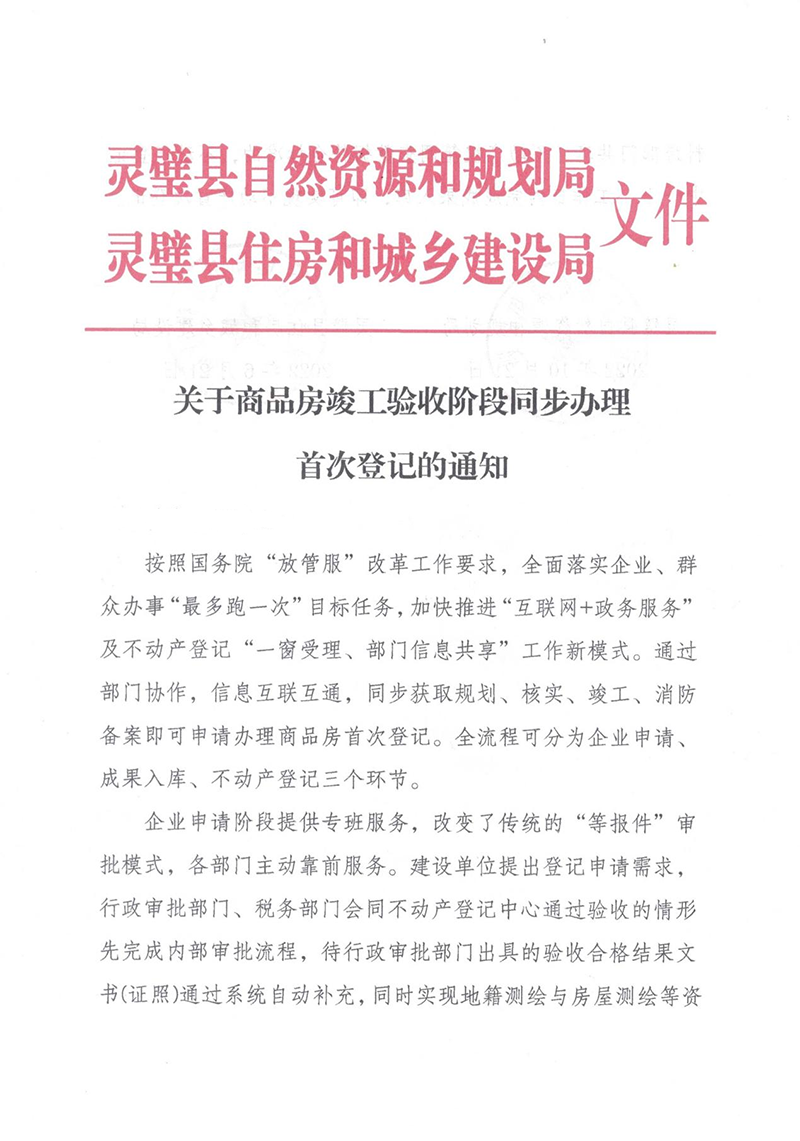 关于商品房竣工验收阶段同步输首次登记的通知