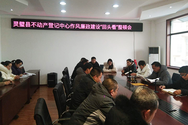 1月14日,灵璧县不动产登记中心召开窗口作风整治“回头看”整顿会议,不动产登记中心杨新国主任主持召开会议,全体人员参加。会议传达学习了省市国土系统巡查出现不动产登记窗口问题相关文件,会议强调落实国务院及省政府“放管服”改革、进一步优化营商环境,提高不动产登记窗口便民服务水平,认真对待巡查反馈回来的问题表逐条对照梳理,并制定实施方案。