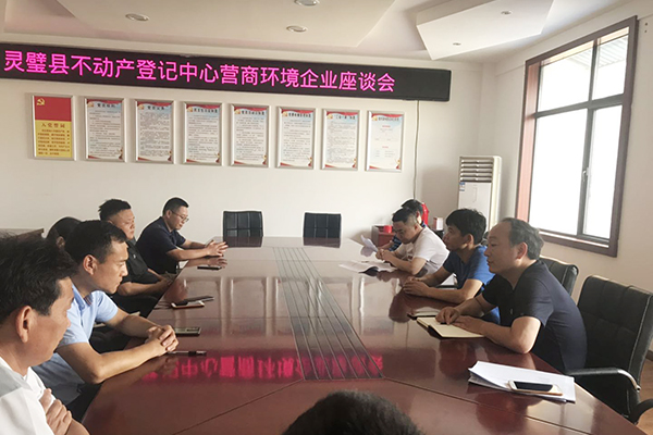 为加快创优“四最”营商环境,努力营造稳定、公平、透明、可预期的营商环境,促进实体经济高质量发展。灵璧县不动产登记中心于近日召开优化提升不动产登记营商环境政企座谈会,研究讨论我县营商环境整改过程中出现的问题。会议由不动产登记中心主任宁道敏主持,局党组成员来飞、安徽省唯丽格红木家具有限公司、安徽康美达面业有限责任公司等六家企业负责人和中心股室负责人参加了本次会议。