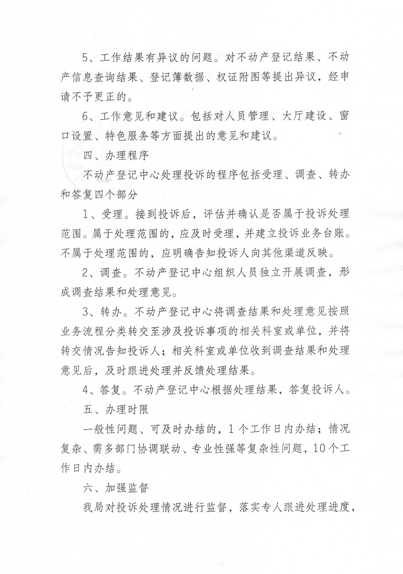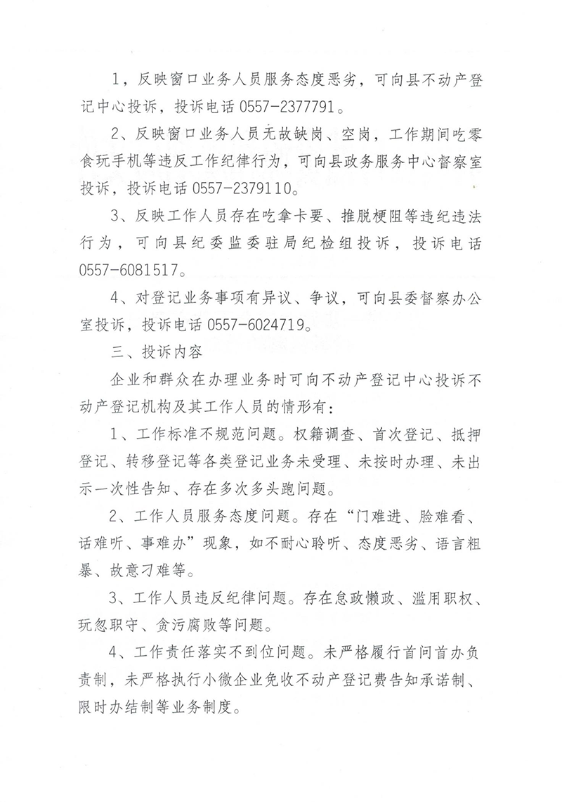 关于进一步建立健全不动产登记投诉机制的通知