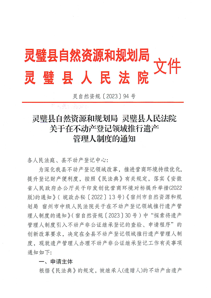 关于在不动产登记领域推行遗产管理人制度的通知