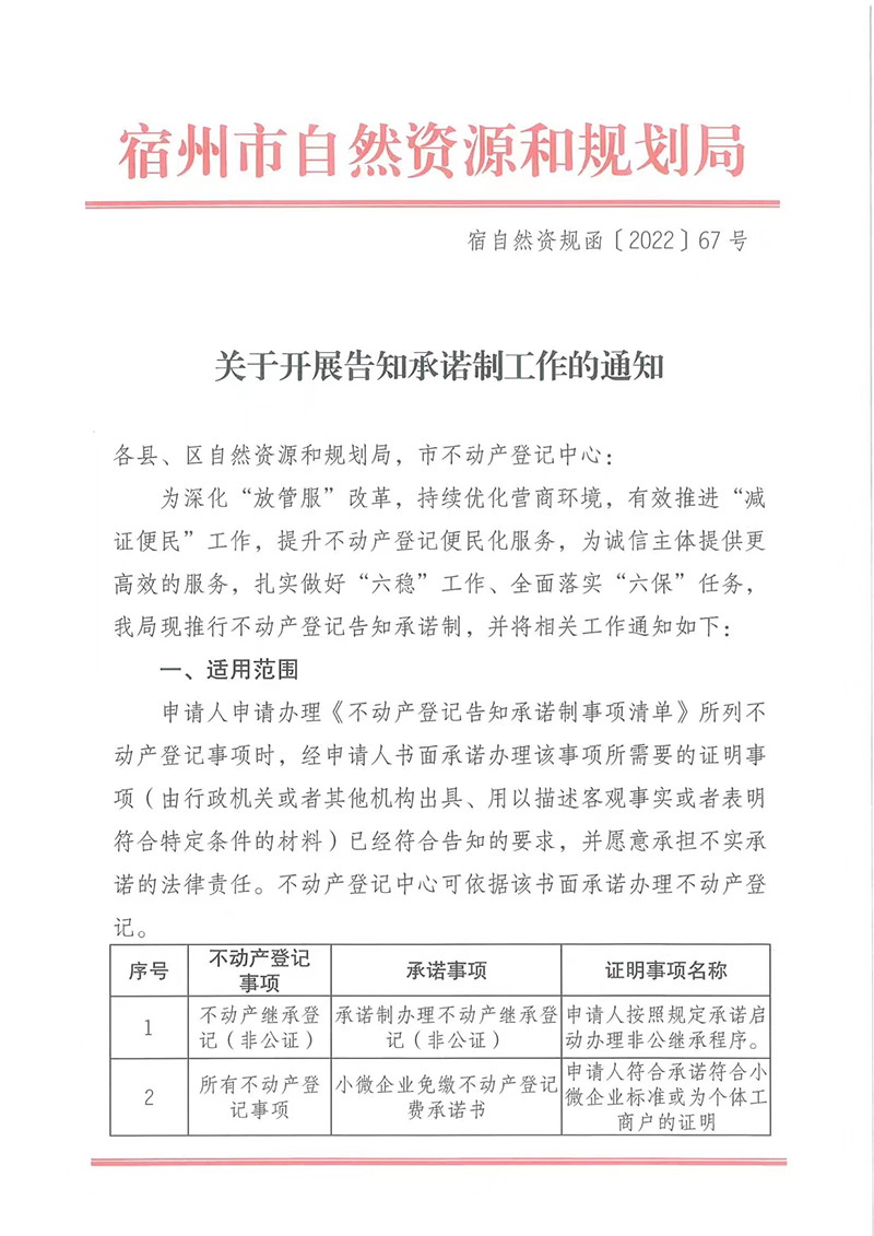 关于转发《宿州市自然资源和规划局关于开展告知承诺制工作的通知》